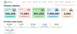 پاکستان میں مجموعی طور پر کرونا وبا کنٹرول میں ہے۔ تاہم ملک میں اب تک پانچ لاکھ 46 ہزار سے زائد کیس جب کہ 11 ہزار 683 اموات رپورٹ ہو چکی ہیں۔
