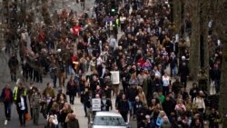 خبر رساں ادارے 'رائٹرز' کے مطابق مظاہرے میں لگ بھگ 10 ہزار لوگ شریک تھے جو "ہمارے بچوں کی زندگی تباہ نہ کرو" اور "فیک وبا" کے نعرے لگا رہے تھے۔