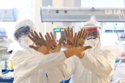 اٹلی میں کرونا وائرس کا علاج کرنے والے طبی عملے کے ارکان نے اپنے دستانوں پر لکھا ہوا ہے کہ "ہم یہ کر دکھائیں گے۔" خیال رہے کہ اٹلی میں کرونا وائرس سے سب سے زیادہ ہلاکتیں ہوئی ہیں۔ لیکن اب وہاں وبا کا زور ٹوٹ رہا ہے۔