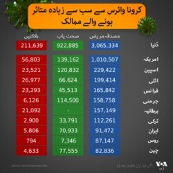دنیا بھر میں کرونا سے دو لاکھ 11 ہزار سے زائد ہلاکتیں