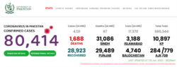 پاکستان میں ایک روز کے دوران کرونا وائرس کے اب تک سب سے زیادہ چار ہزار 131 کیسز رپورٹ ہوئے ہیں جس کے بعد ملک بھر میں اس وبا سے متاثر ہونے والوں کی تعداد 80 ہزار 414 تک پہنچ گئی ہے۔