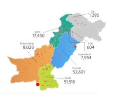 حکام نے خیبر پختونخوا میں 17ہزار، بلوچستان میں آٹھ ہزار، اسلام آباد مین آٹھ ہزار کے قریب، گلگت بلتستان میں 11 سو جب کہ پاکستان کے زیر انتظام کشمیر میں 604 کیسز کی تصدیق کی ہے۔