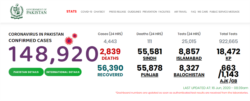 پاکستان میں کرونا وائرس سے ہلاکتوں کی مجموعی تعداد 2839 تک پہنچ گئی ہے جب کہ ملک بھر میں اس وبا سے متاثرین کی تعداد ایک لاکھ 48 ہزار 920 ہے جن میں سے 56 ہزار 390 صحت یاب ہو چکے ہیں۔