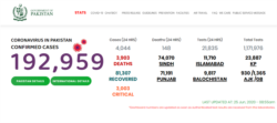 سرکاری اعداد و شمار کے مطابق پاکستان میں کرونا وائرس سے مجموعی طور پر 39 ہزار تین افراد ہلاک ہو چکے ہیں اور ملک بھر میں ایک لاکھ 92 ہزار 959 افراد میں وائرس کی تشخیص ہوئی ہے جن میں سے 81 ہزار 307 صحت یاب بھی ہو چکے ہیں۔