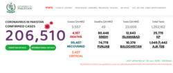 ملک بھر میں اب تک دو لاکھ چھ ہزار 510 افراد میں وائرس کی تشخیص ہو چکی ہے جن میں سے 95 ہزار 407 صحت یاب بھی ہو چکے ہیں۔