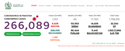 سرکاری اعداد و شمار کے مطابق ملک بھر میں کرونا وبا سے ہلاکتوں کی کل تعداد 5639 ہو گئی ہے اور دو لاکھ 66 ہزار 89 کیسز رپورٹ ہوئے ہیں جن میں سے دو لاکھ آٹھ ہزار سے زیادہ مریض صحت یاب بھی ہو چکے ہیں۔
