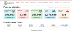 حکام کے مطابق عالمی وبا سے پاکستان میں اب تک چھ ہزار 345 مریض ہلاک ہو چکے ہیں جب کہ 534 مریضوں کی حالت تشویش ناک ہے۔