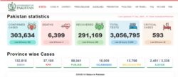سرکاری اعداد و شمار کے مطابق ملک میں کرونا وائرس کے مریضوں کی مجموعی تعداد تین لاکھ، تین ہزار سے تجاوز کر چکی ہے جب کہ اموات چھ ہزار 300 سے زائد ہیں۔