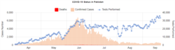 سرکاری اعداد و شمار کے مطابق پاکستان میں اب تک کرونا وائرس سے 307418 افراد متاثر ہوئے تھے جن میں سے 6432 افراد کی موت ہو چکی ہے جب کہ 293916 متاثرہ افراد صحت یاب ہو چکے ہیں۔