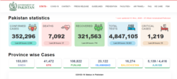 پاکستان میں گزشتہ چوبیس گھنٹوں کے دوران کرونا وائرس کے شکار مزید 37 مریض دم توڑ گئے ہیں جس کے بعد ہلاکتوں کی کل تعداد سات ہزار 92 تک پہنچ گئی ہے۔