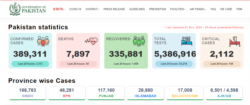 پاکستان میں اب تک عالمی وبا سے 7897 مریض ہلاک اور تین لاکھ 89 ہزار سے زیادہ کیسز رپورٹ ہو چکے ہیں۔ حکام کا کہنا ہے کہ متاثرہ افراد میں سے تین لاکھ 35 ہزار سے زیادہ مریض شفا یاب ہو چکے ہیں۔