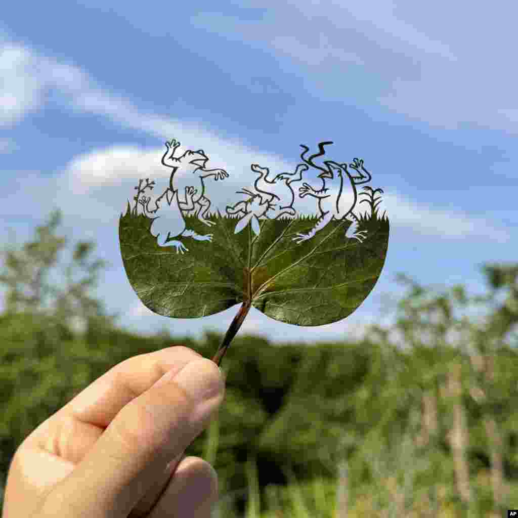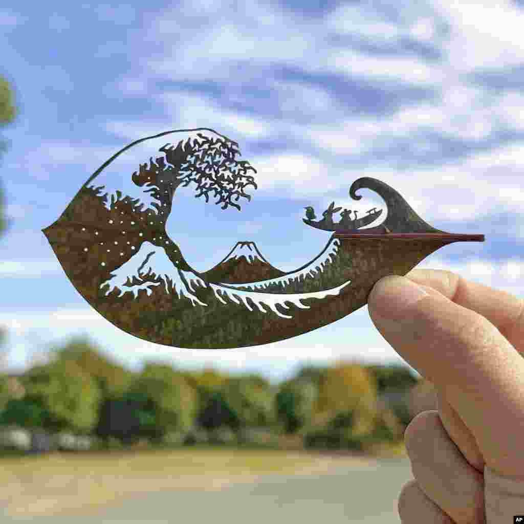 جاپان میں درختوں سے ٹوٹے پتوں کو فن پاروں میں بدلنے والا ایک ایسا آرٹسٹ بھی ہے جو پہلے قلم سے ٹوٹے پتوں پر ڈرائنگ بناتا ہے جس کے بعد یہ آرٹسٹ چاقو سے سوکھے پتوں کو تراش کر فن پاروں میں بدل دیتا ہے۔ اڑتیس سالہ لیٹو جو کہ ذاتی وجوہات کی بنا پر اپنا اصلی نام ظاہر نہیں کرنا چاہتے، کا کہنا ہے کہ اگر وہ پوری توجہ دیں تو وہ ایک فن پارہ ایک ہی بار میں بنا لیتے ہیں۔