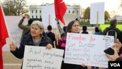 ترکی میں آزادی اظہار اظہار پر مبینہ پابندی کے خلاف اور ترک نژاد دو برطانوی صحافیوں کی رہائی کے لئے، وائٹ ہاؤس کے سامنے اتوار کو احتجاجی مظاہرہ کیا گیا۔