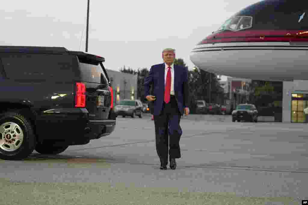 ریاست جارجیا کے انتخابی نتائج بدلنے کی کوشش کے الزام میں سابق صدر ڈونلڈ ٹرمپ نے اپنی گرفتاری پیش کر دی ہے۔ اس کیس میں سابق صدر کو پہلے ہی ضمانت مل چکی ہے۔ ڈونلڈ ٹرمپ اپنے خصوصی طیارے میں فلوریڈا سے اٹلانٹا پہنچے۔ فلٹن کاؤنٹی جیل کے باہر اس حوالے سے خصوصی انتظامات کیے گئے تھے۔ دیکھیے یہ پکچر گیلری۔