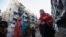 مظاہرہن نے پلے کارڈز اور بینرز اٹھا رکھے تھے جن پر بھارت کے زیر انتظام کشمیر سے بھارتی فوج کی واپسی اور کشمیریوں کو حق خود ارادیت دینے کے لیے اقوام متحدہ کی قرارداد پر عمل درآمد کے حوالے سے نعرے درج تھے۔